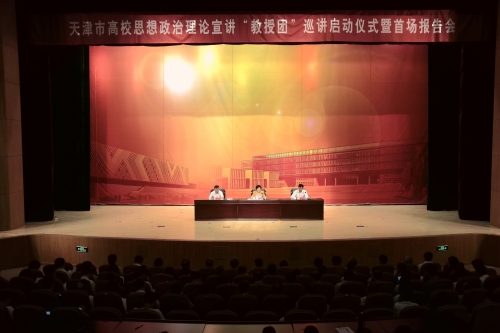 在启动仪式上,首先由杨清海副书记介绍了天津市高校思想政治理论课特聘教授聘任情况,并宣读天津市高校思想政治理论宣讲“教授团”成员名单,“教授团”由24位党政领导干部和专家学者、道德模范组成。
