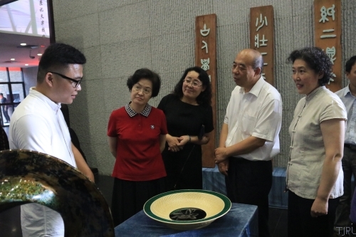 在艺术学院师生作品展厅,程丽华书记一行实地调研了师生艺术设计作品、我校承办的“中国非物质文化遗产传承人群普及培训”作品展。在调研中,程书记详细了解了艺术学院的人才培养体系和就业情况,询问了纺织非遗宣传月活动中“共筑一带一路,藏族纺织非遗展”的情况。我校青年教师获批的国家艺术基金作品——陶胎金粉莳绘《硕果累累》、非物质文化遗产作品、学生的毕业设计作品受到程丽华书记肯定。