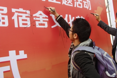最后,参加启动仪式的学生代表们依次在展板上签名。