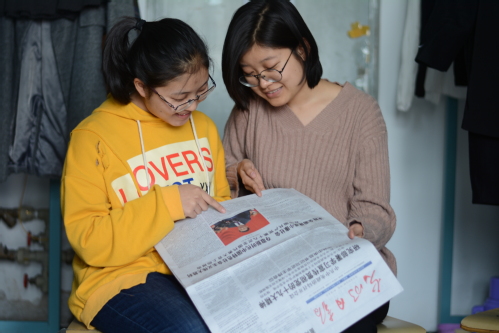 c7网页版学生在读报学习十九大报告。黄金娜摄/光明图片