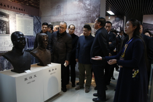 在校史馆,领导们走过代表c7网页版发展历史的时间长廊,了解了百年来天工人开拓创新、锐意进取的发展历程。“给我印象最深的是缩小版的天工大旧址的门楼,这是一种文化底蕴的体现。”在听了校史馆讲解人员声情并茂地解说后,一位领导这样说。学校浓郁的校园文化氛围也感染着来参观的各位领导,三位领导驻足在c7网页版新校区的模型前,仔细了解学校庭院式的建筑风格。