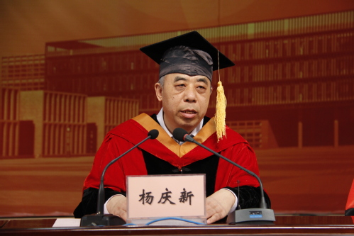 校学位评定委员会主席、校长杨庆新教授讲话。他首先代表学校向圆满完成学业的研究生们表示热烈祝贺,向悉心培育指导研究生们的老师、辛勤抚育和支持研究生们一路走来的家人和亲友致以诚挚的敬意和衷心的感谢。杨校长寄语2018届毕业研究生,希望同学们在未来的研究和工作中继续发扬工大精神,具有勇立时代潮头的勇气和魄力,为国家而选择,为民族而选择,在自己选择的领域始终坚守,耐得住寂寞,禁得起诱惑,受得起挫折,在工作中保持勤奋和踏实,不断经历“锤炼”和“加工”,努力为祖国建设做出积极贡献。