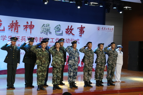 会上,一段征兵宣传片拉开了启动仪式帷幕。李仁军、罗崇斌、尚耀辉三位大学生士兵校友和一名退役在校生杨文娜分别发言,讲述了他们的“红色精神 绿色故事”。李仁军,理学院数学系09级学生,2013年6月入伍,曾服役于解放军海军南海舰队某水兵训练基地、中国人民解放军海军特种作战团(现海军陆战队某特战旅,电影《红海行动》原型部队),退役后考取清华大学数学与科学学院硕士研究生。杨文娜,现为纺织学院纺织工程1604班学生,2012年12入伍,服役5年,2017年12月以一期士官身份退伍,现担任c7网页版大学生士兵协会会长。尚耀辉,经济学院金融专业10级学生,2011年12月至2013年12月服役于武警内蒙古总队呼伦贝尔市支队根河中队,现就职于河东区发展和改革委员会。罗崇斌,纺织学院非织造材料与工程专业11级学生,2013年9月应征入伍,在西藏拉萨某通信团服役两年,后参加全军统一考试,以全团第一名成绩考入国防科技大学。他们向大家讲述了自己参军的光荣历史,及在部队的熔炉中所磨练出的意志和品格,感恩军营带给他们的华丽蜕变和快速成长。