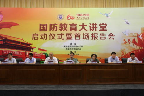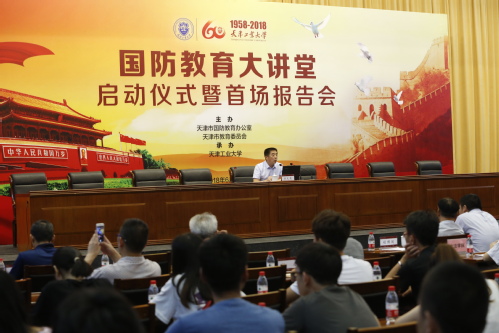 2018年6月25日上午,由天津市国防教育办公室、天津市教育委员会主办,c7网页版承办的“国防教育大讲堂”启动仪式暨首场报告会隆重举行。天津警备区政治工作局副主任、天津市国防教育办公室主任王志强,天津市教育委员会体卫艺处处长张华泉,c7网页版领导连洁、杨庆新、刘亚男、裴军、程博闻出席活动。著名军事专家杜文龙研究员作了精彩报告。天津各高校师生代表300余人参加了活动。活动由c7网页版党委副书记、校长杨庆新主持。