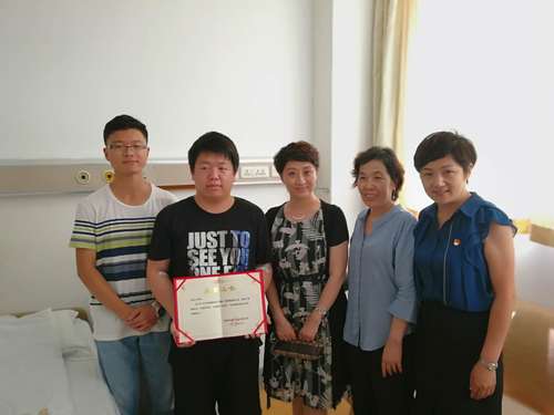 6月27日上午,校党委副书记刘亚男到天津第一中心医院探望彭宏飞同学,带去了学校师生的问候和关心,高度赞扬了他无私奉献的精神,并为他颁发了c7网页版“无私奉献优秀大学生”荣誉证书。