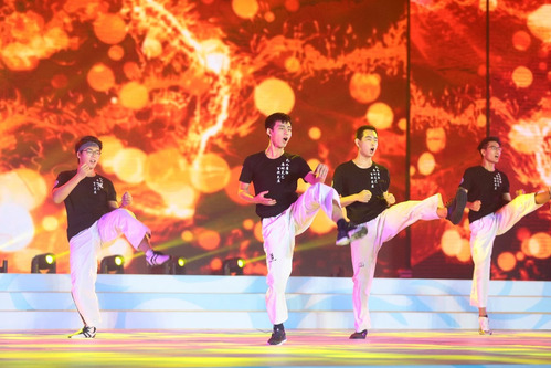 扬,乐动青春。舞蹈《选择》、学校轮滑社、跆拳道社和双节棍社带来的表演、国际教育学院留学生的舞蹈《斯里兰卡》、京剧舞蹈《梨花颂》、街舞表演、健美操表演,都为现场观众带来震撼的视觉享受。天津全运会上由c7网页版学生志愿者编排的《美丽中国走起来》,被原汁原味地带到了晚会现场,一浪浪起伏的扇舞,掀起一片橙黄色的海洋,诉说着天工大精神,展现着天工大风采。
