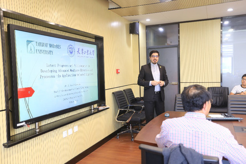 报告会上,Saeid Hosseini教授介绍了以应用为导向方法开发先进膜材料和工艺的最新进展与成果。报告会上,Saeid Hosseini教授重点从“气体分离”、“液体分离”两个应用方面对报告内容进行了详细介绍。Saeid Hosseini教授首先介绍了MgO填充的混合基质膜及PBI与PI共混膜的制备,膜的制备技术及放大工艺,通过对膜材料的研究填充量与共混比例,制备的砸化膜与共混膜均有所改善,在去除CO2方面具有高渗透性和选择性。继而,Saeid Hosseini教授介绍了他们团队研发的一种新型纳滤膜的制备,在实际应用中表现出十分优异的截留性能。会后,Saeid Hosseini教授与在场师生就膜制备及材料设计方面进行了深入的交流与讨论,现场学术氛围浓厚。