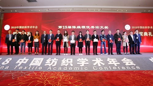 学术年会期间颁发了系列奖项,我校纺织学院康为民教授荣获2018纺织青年科技奖。由我校张健飞教授指导的、刘菲等人撰写的《层层自组装多糖微胶囊制备及其在纯棉织物上的应用》,陈利教授指导的、王心淼等人撰写的《多层多向机织复合材料细观结构建模及其性能》获得第19届陈维稷优秀论文奖。此外,大会还向包括我校在内的9所2018中国纺织工程学会科研基地授牌,并举行了海峡两岸纺织服装产学研联合体成立仪式。