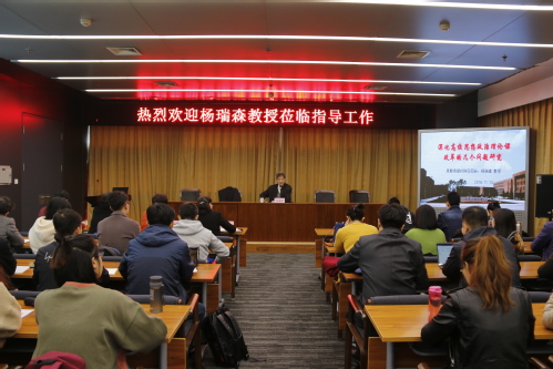 在报告会上,杨瑞森教授分别从“领导体制机制”“学科队伍建设”“科研热点问题”三个方面深入分析了现阶段深化高校思想政治理论课改革的关键问题。杨教授指出,在高校思想政治理论课教学过程中,要注重理论与社会实际的密切联系,要注重以马克思主义理论的科学性与真理性去吸引、教育学生,真正做到马克思主义在青年学生中“入脑入心”,切实提升思想政治理论课程的吸引力与实效性。要做好马克思主义理论学科的人才队伍建设工作,形成合理的结构配备,要注重培养教学、科研骨干,并做到教学与科研工作的紧密结合,突出马克思主义理论学科的特色与优势。最后,杨瑞森教授结合现阶段社会科学发展的最新形势,分析了当前马克思主义学科在教学科研领域的主要工作方向,强调要做好党的十九大精神的“三进”工作,要做好有关习近平新时代中国特色社会主义思想的研究与阐释。