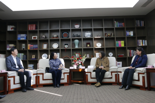 2018年12月11日下午,市政协副主席、民进市委会主委张金英,专职副主委兼秘书长赵长龙,组织部部长贾福倩一行到我校走访调研。在行政中心412会议室,校党委书记连洁同张金英一行进行了座谈交流。校党委常委、统战部部长张健华,民进河东区主委、河东区政协副主席、教务处处长王晓红,民进c7网页版支部主委、纺织科学与工程学院院长张兴祥参加座谈。