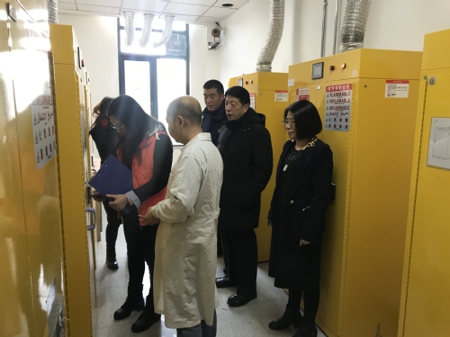 王晨亮副校长一行先后来到纺织科学与工程学院、环境科学与工程学院、化学与化工学院、材料科学与工程学院和科研中心,对渉危化品较多的个人科研实验室和药品室进行了认真仔细地检查,重点检查了危险化学品四无一保的落实情况、易制毒易制爆药品的五双管理、灭火器材的使用、洗眼器的使用、突发事件应急处置的方式等。