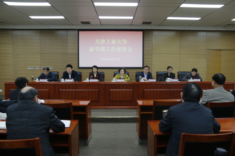 校长夏长亮从十个方面部署了新学期重点工作:第一,本科教育工作要积极发展一流本科教育,增设通识课程,积极开展博雅教育,增加体育课程,增强学生体质,加强图书馆建设水平。第二,科研工作要积极申报高水平科研项目,实现增量突破和科研经费总量突破,打造国家级科技平台,加大产业技术研究院和产学研基地建设,重点推动军工研究院等特色研究院发展。第三,学科建设和研究生培养方面,要做好世界一流现代纺织学科群、天津市一流学科等建设,调整优化学科布局,适度扩大招生规模,提升学位授予质量,强化毕业典礼仪式感,积极营造毕业季氛围。第四,师资队伍建设方面要加快引进和培育高层次人才与团队,推进人才引进培养体制机制改革创新,深化岗位和人事分配制度改革。第五,国际交流方面要转变思维,拓展留学生生源地,提高留学生生源质量,解决留学生宿舍问题,适度控制留学生规模。第六,国有资产与设备管理方面要推动大型仪器共享平台建设,实行仪器设备信息化管理。第七,信息化工作要加快网上办事大厅建设,完善学校网站建设。第八,财务工作要完善网上预约平台服务,提升科研服务水平。第九,后勤保障工作要及时进行学生公寓基础设施建设和修缮,加快南门快递岛整改和建设,有计划、有步骤地实现学生公寓安装空调的目标,加快推进河东校区拆迁置换工作,深化平安校园建设。第十,安全保卫要健全安全保卫工作机制,规范危化品采购管理。