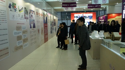 展厅中间还设置了展柜展台,展示了部分著作、报告、出版物等,让大家对南开大学哲学社会科学领域的成果有了直观了解。
