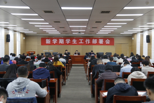 2019年3月12日上午,我校新学期学生工作部署会在会议中心第七会议室召开。校党委副书记刘亚男出席并讲话,学工部、校团委负责同志及各学院党委副书记、全体辅导员140余人参加会议。会议由党委学工部部长张玉波主持。