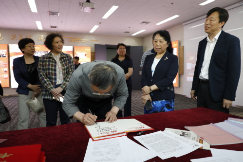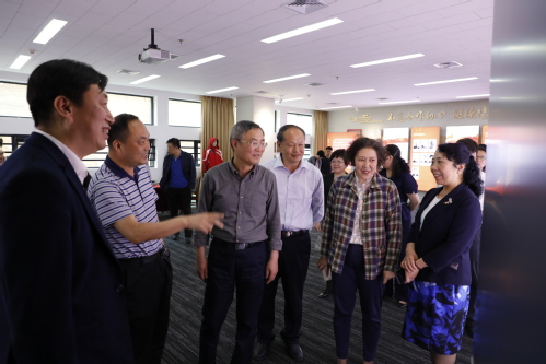 报告会后,校党委书记连洁陪同蔡达峰主席一行参观了民进c7网页版支部“同心室”,我校民进支部主委张兴祥教授担任讲解。“同心室”以“鉴党建、兴民进、筑同心”为主题,分为“同心初心,源远流长”“同心奋进,共创辉煌”“同心追梦,携手前行”三个部分。“同心室”充分展示了我校民进支部“一颗同心,双岗建功”的支部建设理念和取得的喜人成绩。