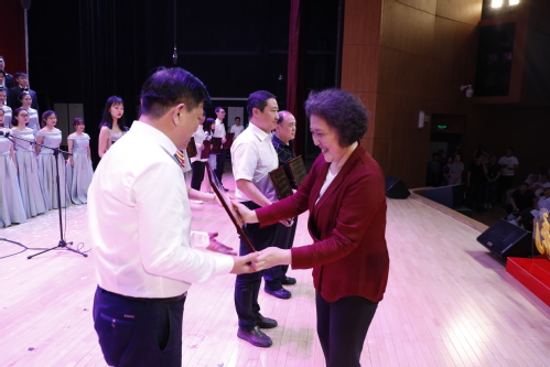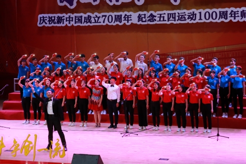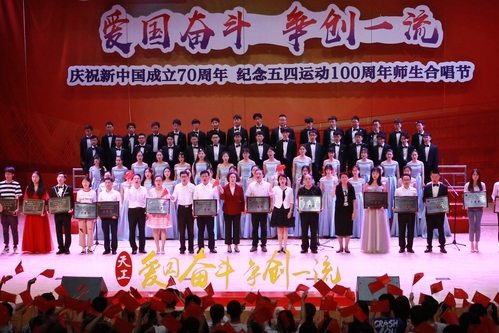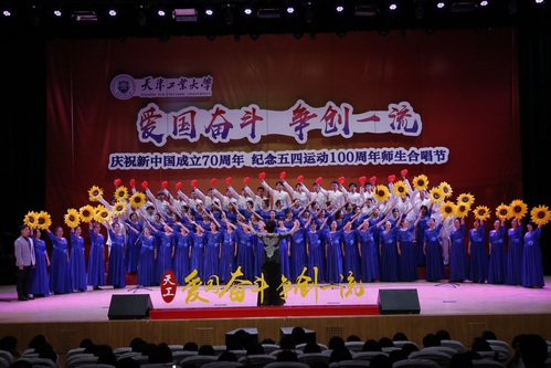 唱响新时代,传承爱国情。“庆祝新中国成立70周年 纪念五四运动100周年师生合唱节”5月23下午在我校艺缘礼堂举行,这是我校“爱国奋斗 争创一流”主题教育活动的重头戏之一。校党委书记连洁,党委副书记刘亚男,党委常委刘宏韬、王军杰、张健华,各基层党委、党总支、直属党支部主要负责人和师生代表,现场观看了这场精彩的红色盛典。此次合唱大赛共有包括机关分党委和15个学院党委在内16支队伍参赛,近半数中层干部带头参加。大家情绪饱满,激情四溢,歌声高昂,展现出对祖国发自内心的热爱,表现出对天工大发自内心的自豪,表现出天工大“爱国奋斗 争创一流”的精气神。