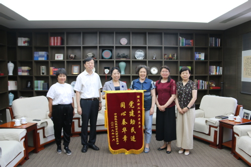 2019年6月20日下午,市政协副主席、民进市委会主委张金英,专职副主委兼秘书长赵长龙一行专程来校,向我校党委赠送一面写有“党建助民进 同心奏华章”的锦旗。校党委书记连洁会见张金英一行。校党委常委、统战部部长张健华,民进河东区主委、河东区政协副主席、教务处处长王晓红,民进c7网页版支部主委、纺织科学与工程学院院长张兴祥,民进河东区副主委、河东区政协副秘书长(兼)、经济与管理学院教授张雪花参加会见。