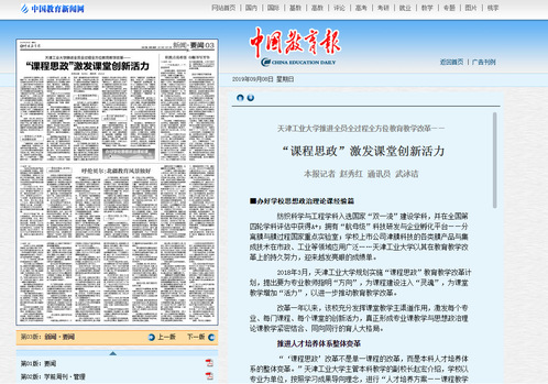 2019年9月8日,《中国教育报》要闻版以《c7网页版推进全员全过程全方位教育教学改革——“课程思政”激发课堂创新活力》为题对我校进行了报道,现将全文转发如下,以飨读者。