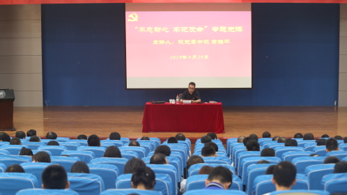 为深入学习宣传贯彻习近平新时代中国特色社会主义思想,深入推进“不忘初心、牢记使命”主题教育,2019年9月29日上午,校党委书记俞绍平在经管学院141报告厅为全校党员干部讲授“不忘初心、牢记使命,加快建设具有世界一流学科的特色高水平大学”专题党课。市委第二批主题教育第七巡回指导组桂道军同志列席;校领导班子成员,各基层党组织书记、处级以上干部、党员代表300余人聆听了党课。