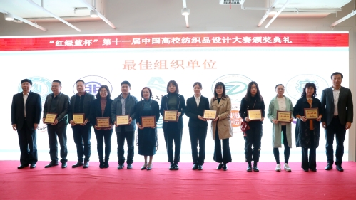 2019年11月16日上午,由中国纺织服装教育学会、教育部高等学校纺织类专业教学指导委员会主办的“红绿蓝杯”第十一届中国高校纺织品设计大赛颁奖典礼在绍兴柯桥举行。中国工程院院士蒋士成、中国纺织服装教育学会会长倪阳生以及多位业内专家、高校领导和来自全国30多所高校的获奖师生代表出席了本次颁奖大会。我校学生获得一等奖2项、二等奖7项、三等奖15项,同时,我校获得“最佳组织单位奖”。
