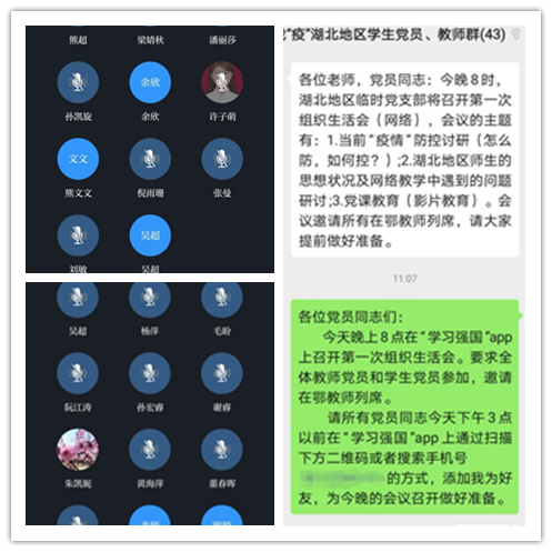 号角吹响,立即行动。临时党支部立即行动起来,按照分工分组,每天关注所在区域师生心理状况,听取师生意见和建议;通过“学习强国”学习平台召开支部大会,进行理论学习、沟通交流;在战“疫”一线培养考察入党积极分子……师生党员坚决做好习近平总书记关于疫情防控重要指示精神和党中央决策部署“宣讲员”、学校党委与湖北地区师生之间的“联络员”、湖北地区师生心理情绪的“疏导员”。