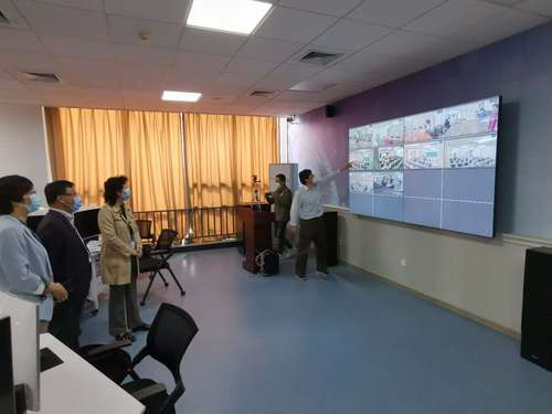 陈莉副校长详细询问了考生复试具体流程和突发情况应急处置预案,并观看了考生远程视频复试情况。在复试现场,复试人员采用“电脑+大屏幕或投影”方式与考生连线,复试考生按随机生成的顺序,受邀进入复试考场,随机抽取复试试题,分别完成英语水平测试、专业和综合素质测试等环节,复试结束后离场。复试过程全程录音录像。