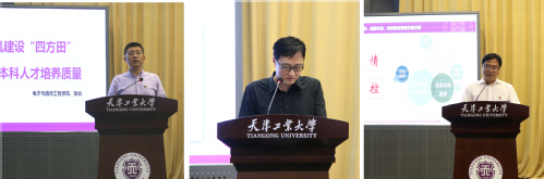 会上,电子与信息工程学院党委副书记张谷,机械工程学院党委副书记李博,党委学生工作部副部长刘孜勤分别围绕学风建设、网络思政、爱国主义教育作了交流分享。