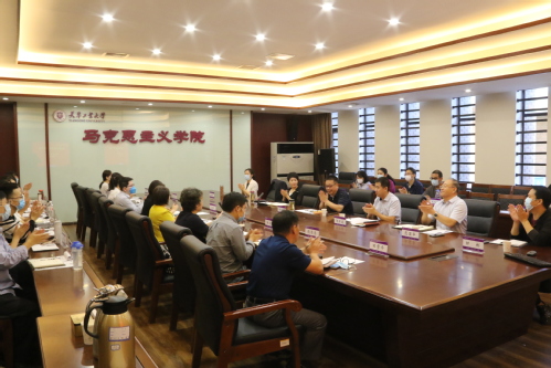 2020年9月17日上午,校党委书记俞绍平、党委副书记陈泮成来到马克思主义学院实地调研并参加形势与政策课集体备课会。马克思主义学院领导班子全程陪同、形势与政策课教研室全体授课教师参会。