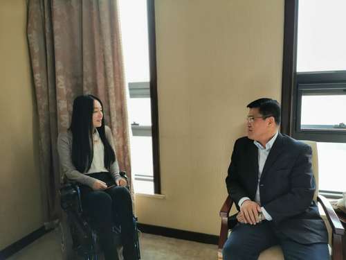 活动前,校党委副书记胡英江亲切看望董明老师,与董老师就青年工作、志愿服务等方面进行深入交流。
