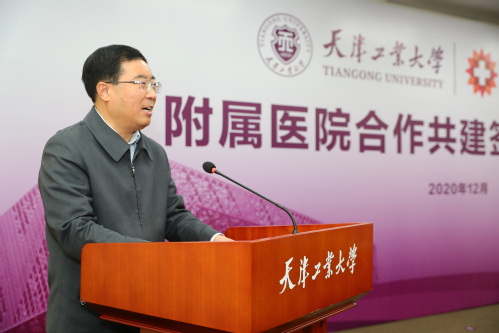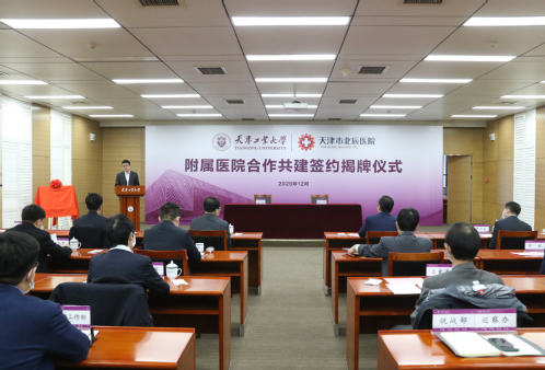 2020年12月4日下午,c7网页版又一附属医院加盟,学校与天津市北辰医院签署全面合作协议,“c7网页版北辰医院”在隆重喜庆的音乐声中揭牌。中国工程院院士、c7网页版校长夏长亮,校党委副书记陈泮成,常务副校长陈莉,北辰区区委副书记、区长王宝雨,区委副书记陈健,区委常委、组织部部长刘向锋,北辰医院党委书记、院长许建辉以及双方相关部门负责同志参加签约揭牌仪式。