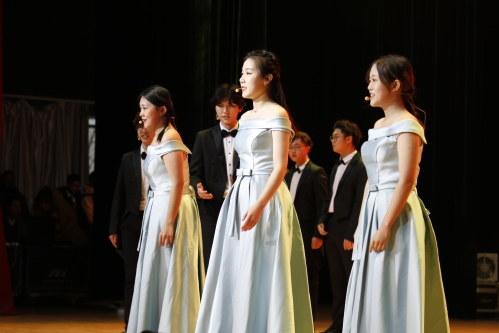 情景诗朗诵《我们的青年时代》和歌曲《毕业歌》《长城谣》让师生一起重温85年前国家陷入危难之际,爱国青年们发出的时代声音。正是这样的热血青年们的披荆斩棘、奋斗牺牲,中华民族才得以从危难中奋起、重生。节目更让大家懂得:中国共产党从诞生之日起,就是同青年学生、知识分子结合在一起的。同样,青年学生、知识分子也只有跟中国共产党在一起,才能走上正确的道路。