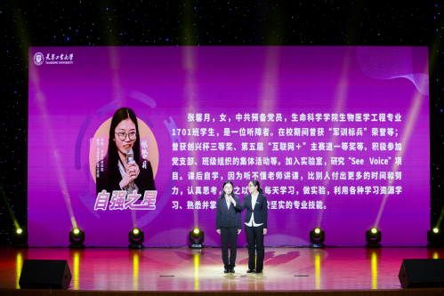 人生能有几回搏,誓把青春许家国。情景诗朗诵《共和国的脊梁》,展示了一批批科研工作者以青春年华投身祖国建设事业,埋头苦干,实现了科学技术各个领域“零”的突破,创造了令全国各族人民自豪的非凡成就。袁隆平、钟南山等国家功勋模范人物事迹的再现,让不少师生落下眼泪。