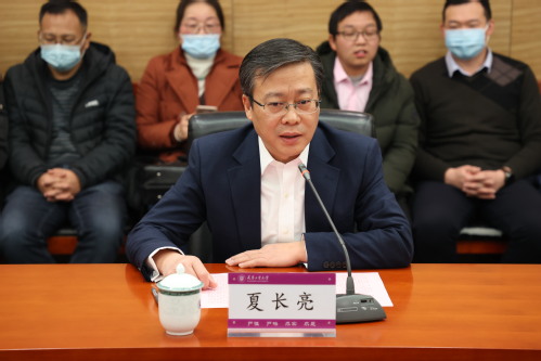 校长夏长亮院士致欢迎词并讲话。他高度评价了邓宗全院士的学术成就和影响力,代表学校对邓宗全院士受聘为我校机械工程学院首席科学家表示热烈欢迎和衷心感谢。