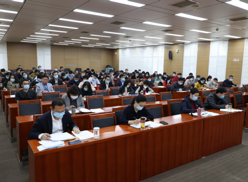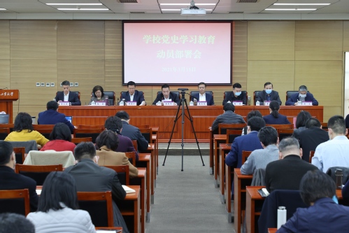 2021年3月15日下午,我校党史学习教育动员部署会以线上线下相结合的形式召开。全体校领导、全体中层干部参加此次动员部署会。校党委书记俞绍平作全校党史学习教育动员讲话。会议由校党委副书记胡英江主持。