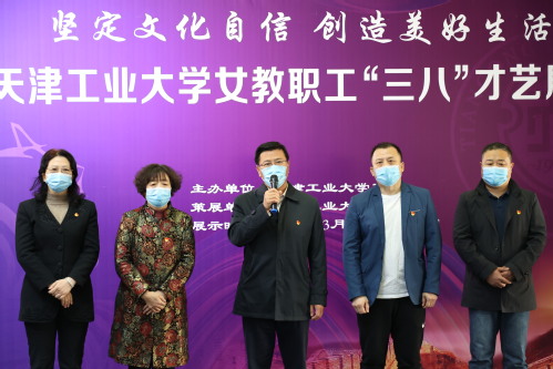 阳春三月,人面桃花相映红;春风扑面,岁月巾帼竞风流。2021年3月23日,我校庆祝中国共产党成立100周年女教职工才艺展示活动在艺术学院一楼展厅开幕。校党委副书记、工会主席胡英江出席并致辞。各分会主席、各分会女工委员、师生代表参加活动。活动由工会常务副主席于晓刚主持。