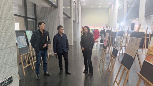 在艺术学院大厅,张玉波副校长参观了服装与服饰设计专业和环境设计专业课程展,现场听取了学院大厅和庭院改造设计方案。
