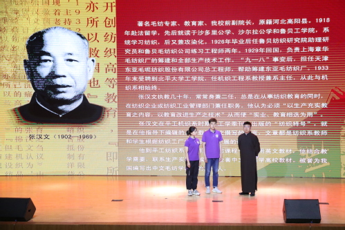 课程打破常规,采取丰富多彩的组织形式,校党委书记俞绍平以《从历史中汲取成长成才的营养》为题导课,常务副校长陈莉以《以梦为马 不负韶华》为题结课。课程主体由“织桑麻情缘 立爱国初心”“担兴国使命 绘奋斗画卷”“扬创新风帆 逐科技强国梦想”三部分组成。课程由马克思主义学院思想政治理论课教师聂丽琴主讲,同时邀请了我校多名教师、学生作为嘉宾登台,嘉宾们和主讲教师共同上了一堂内容丰富、形式多样、主题鲜明的主题思政课。