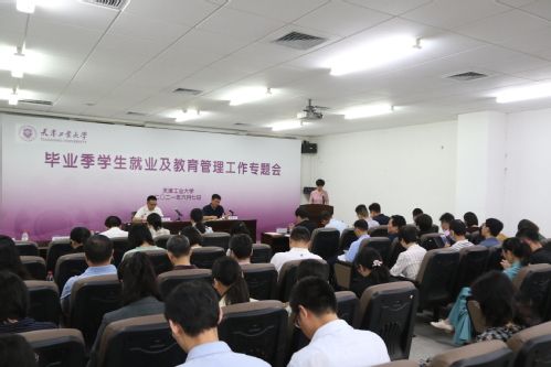 为贯彻落实李克强总理重要批示精神和全国就业创业工作暨普通高等学校毕业生就业创业工作电视电话会议精神,落实天津市委工作要求,2021年6月7日上午,我校在机械工程学院F309报告厅召开毕业季学生就业及教育管理工作专题会。校党委书记俞绍平、校党委副书记胡英江出席会议。学校就业工作领导小组成员单位负责同志,各学院党政负责同志及分管学生工作的负责同志共计60余人参加会议。会议由胡英江副书记主持。