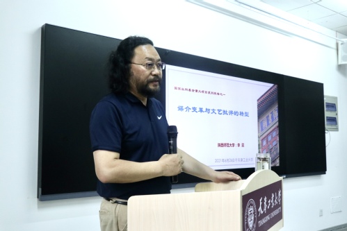李震教授的报告题目为《媒介变革与文艺批评的转型》。他从媒介本体与文艺批评的媒介化、媒介本体化对传统文艺生态的颠覆、文艺批评主体的转换、视听媒介批评与批评自身媒介的拓展等四个方面对报告主题进行了详细阐释。李震教授表示,任何一种新事物的诞生都是生机和阵痛同时同步发生的,媒介变革给文艺批评带来了新的转机。媒介化时代的文艺批评是一个有待深入认识、认真研究、不断发现的领域。我们有理由期待媒介变革中文艺批评站到新的高度,找到新的出路。