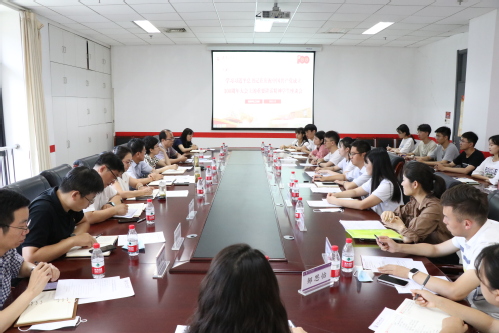 2021年7月8日上午,我校学习习近平总书记在庆祝中国共产党成立100周年大会上重要讲话精神学生座谈会在艺缘活动中心302会议室召开。校党委副书记胡英江出席并讲话,党委学工部、校团委相关负责同志及辅导员代表、学生代表参加座谈会。会议由党委学工部部长王丽清主持。