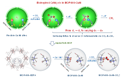 气候变化是人类面临的全球性问题,我国提出2030年碳达峰和2060年碳中和目标。CO2作为可再生的C1资源,利用太阳能驱动CO2转化为燃料,被认为是缓解日益严重的能源危机和环境问题的一个重要途径。以C1产物为例,光还原CO2的产物倾向于CO和HCOOH,而不是热力学上有利的CH4。该过程涉及多电子-质子耦合过程,伴随着多种C1中间体,而这些中间体从催化位点上的脱落,将影响产物CH4的选择性和活性。因此,开发可抑制动力学产物,强化C1中间体与催化位点之间结合力的催化剂,为光还原CO2到CH4的关键。