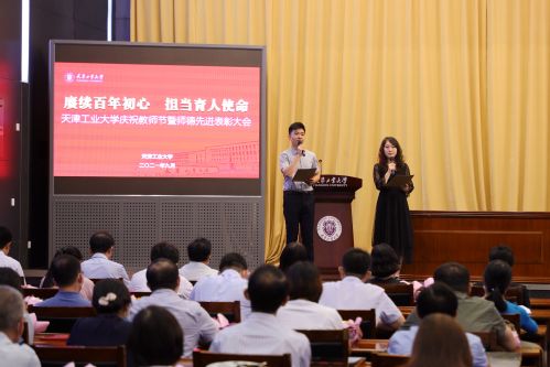 表彰会上,我校师德征文一等奖获得者物理科学与技术学院张纳老师、师德演讲比赛一等奖获得者艺术学院马囡老师进行了现场展示,讲述身边同事爱岗敬业、无私奉献的高尚品质;我校驻蓟州区工作队以视频形式向领导和老师们汇报了驻村两个多月来推进乡村振兴扶持发展工作情况;航空航天学院无人机团队负责人、清华大学博士、青年创业导师李京阳老师分享了科技创新、航空报国的创新创业之路;为天津代表团夺得第十四届全运会首金的王丽娜老师讲述了参赛团队摘金背后的故事。
