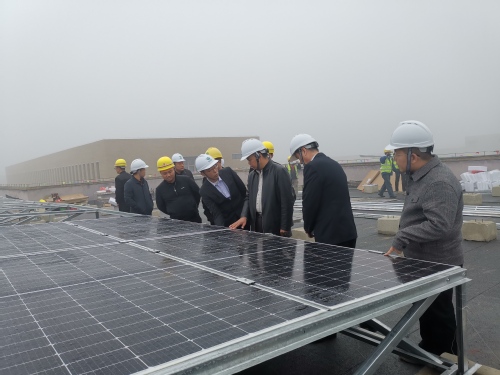 随后,贾勇董事长介绍了上海电力能源科技有限公司的发展情况。秦顶轻大总经理夏爱民介绍了光伏建筑一体化,BIPV技术理念的形成背景、攻坚克难的过程以及后续工作进度情况。最后,双方工作人员参观了国际教育学院示范工程。