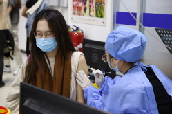 负责在接种现场维持秩序的工作人员介绍说,学生们排好队后,会以30人一组的方式依次进入登记区、接种区和留观区,待30分钟留观结束后方可签字离场;针对不确定自己是否能够接种第三针疫苗的师生,现场还设立了专门的咨询区,方便同学们及时获取专业意见,在科学指导下接种疫苗。