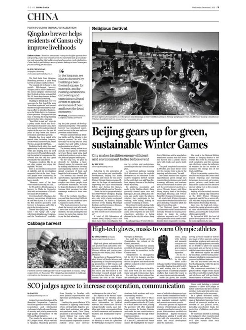 2021年11月30日,央视新闻以《冬奥来了智能保暖高校科研团队研发“保暖套装”》为题,对我校刘皓教授及其团队的科研成果进行了报道。12月1日,CHINA DAILY纸媒、客户端以《High-tech gloves, masks to warm Olympic athletes》为题对再次对刘皓教授及其团队的科研成果进行了报道,现转载如下,以飨读者: