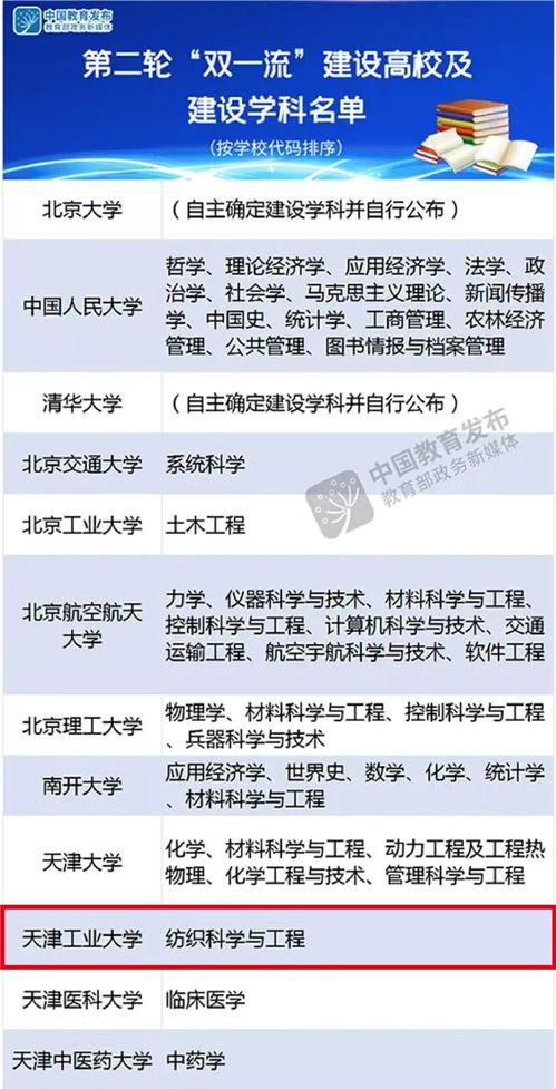 日前,教育部、财政部、国家发展改革委正式公布了第二轮“双一流”建设高校及建设学科名单,我校成功入选第二轮“双一流”建设高校,建设学科为纺织科学与工程。