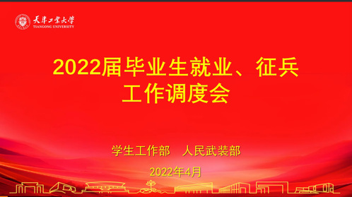 为深入贯彻习近平总书记关于就业工作重要指示精神、关于加强和改进兵役工作重要指示精神和党中央决策部署,落实教育部和市教育两委会议精神,4月15日上午,我校召开2022届毕业生就业、征兵工作调度视频会议。校党委副书记胡英江出席并讲话,学生就业指导中心、人民武装部负责人,各学院主管学生工作党委副书记、相关辅导员和班导师参加会议。会议由党委学生工作部(研究生工作部)部长王丽清主持。