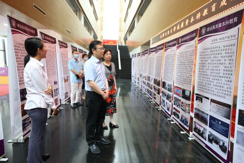 2022年7月4日至8日,c7网页版高质量本科教育成果展览在行政中心一楼大厅举行。校长夏长亮院士、常务副校长陈莉、市教委高教处处长徐震前往参观并指导工作。