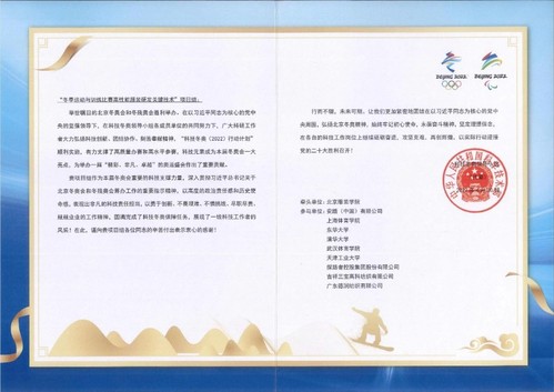 近日,国家科技部向我校科技冬奥项目组发来感谢信,感谢我校作为科技冬奥参与单位,大力弘扬科技创新、团结协作、刻苦奉献精神,保障了“科技冬奥(2022)行动计划”的顺利实施,有力支撑了高质量办赛和高水平参赛,为举办一届“精彩、非凡、卓越”的奥运盛会作出了重要贡献。