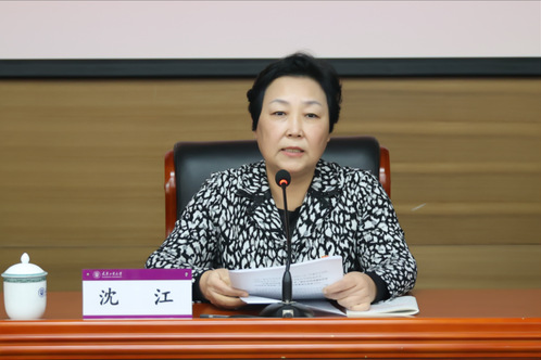 为深入学习宣传贯彻党的二十大精神,把学校广大党员干部师生员工的思想统一到党的二十大精神上来,把力量凝聚到党的二十大确定的各项任务上来,2022年11月22日下午,我校举行“学习宣传贯彻党的二十大精神专题读书班”开班动员会暨专题宣讲,校党委书记沈江作党的二十大精神专题宣讲。会议采用线上线下相结合的方式开展,校领导、中层干部、“青马”第六期培训班学员、党外人士代表、师生代表等参会。会议由校党委副书记陈泮成主持。